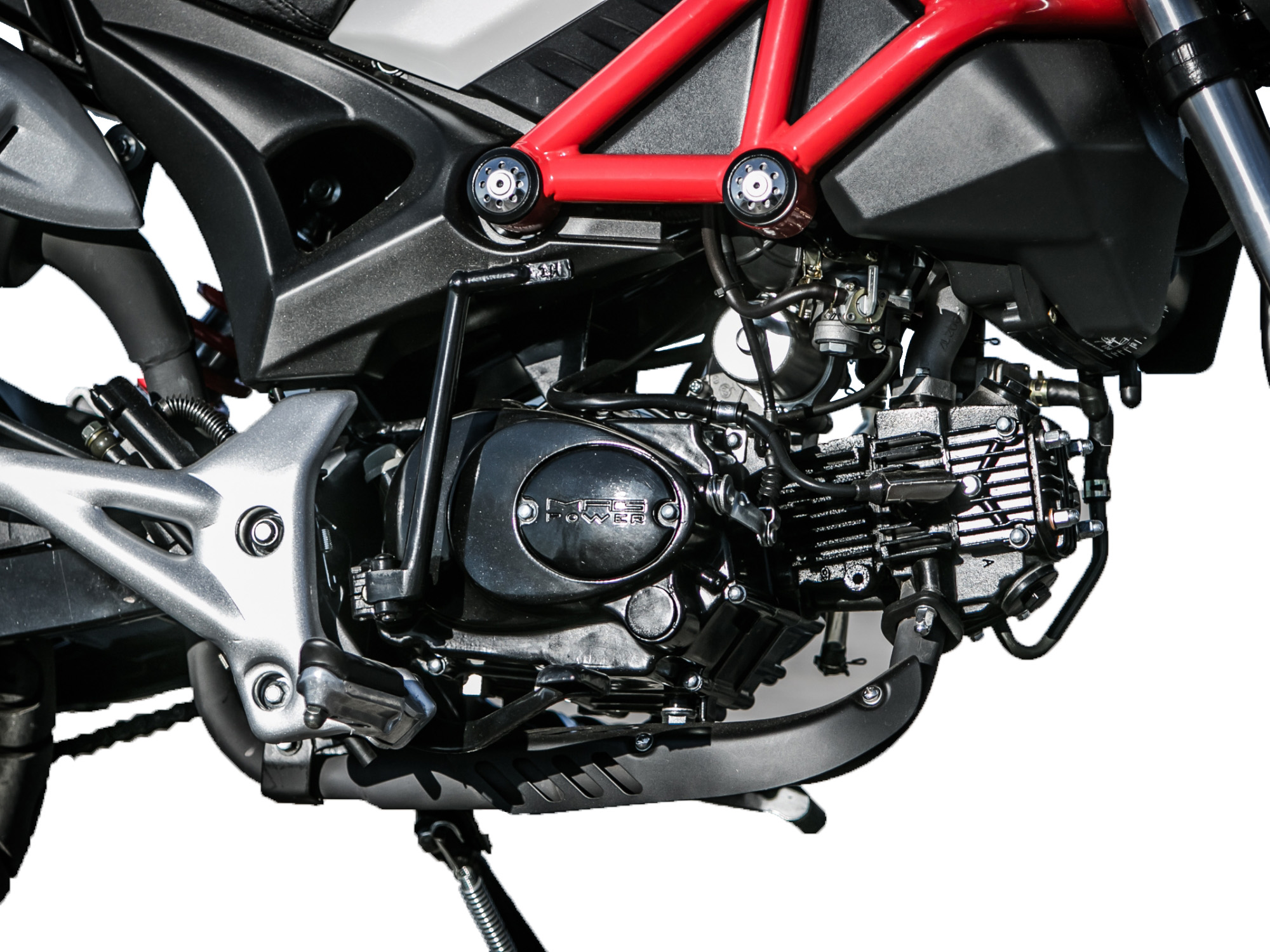 Cette belle moto vient révolutionner le monde des mini 4-temps. Maniable, légère, réactive, la Bombers 50cm3, est aussi fiable et sécurisante.